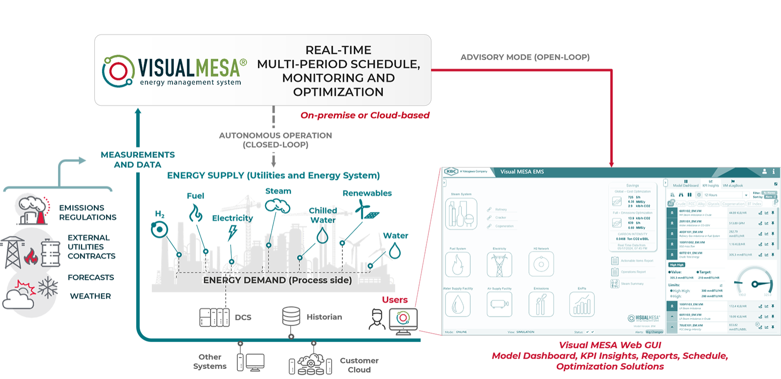 The Visual MESA® Energy Management System is a real-time, model based, energy digital twin. Its suite of applications provides the fundamental tools to monitor, manage, schedule and optimize renewable, conventional, and combined energy systems, including storage and GHG emissions. Together the tools deliver a unified solution for all energy and emissions needs.