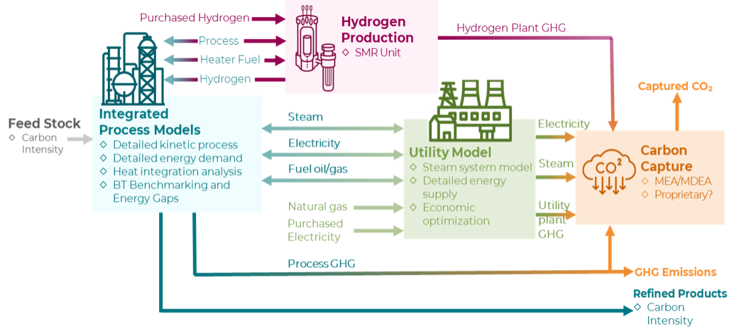 Figure 2 shows how KBC's IP3EM allows refiners to model their operations alongside emissions and economic data. When paired with the GREET® model and the BT Index, this method helps teams: